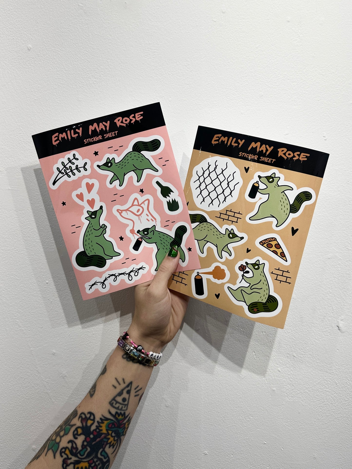 Raccoon stickers for all your stickering needs! Each pack contains 2 sheets, each measuring 6"x8", totalling 12 designs in a high quality vinyl material.